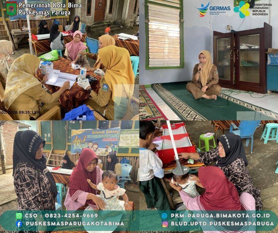 Kota Bima, Februari 2026 - Upaya jemput bola dalam meningkatkan derajat kesehatan masyarakat terus dilakukan secara masif oleh jajaran tenaga kesehatan Puskesmas Paruga. Pada Senin (23/02/2026), kegiatan Posyandu Keluarga (Posga) kembali digelar secara serentak di dua wilayah strategis, yakni Posga Amahami (Kelurahan Dara) dan Posga Nae (Kelurahan Nae), Kecamatan Rasanae Barat, Kota Bima.