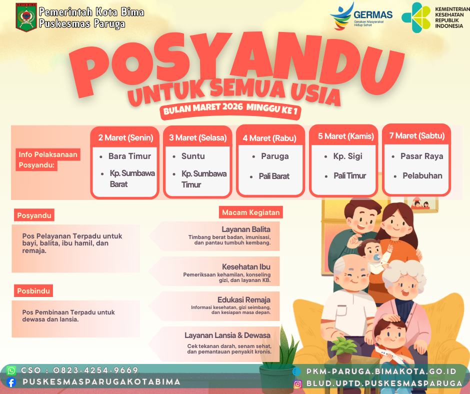 Jangan lewatkan pelayanan Posyandu untuk Semua Usia di wilayah Rasana'e Barat pada Minggu ke-1 Maret ini.