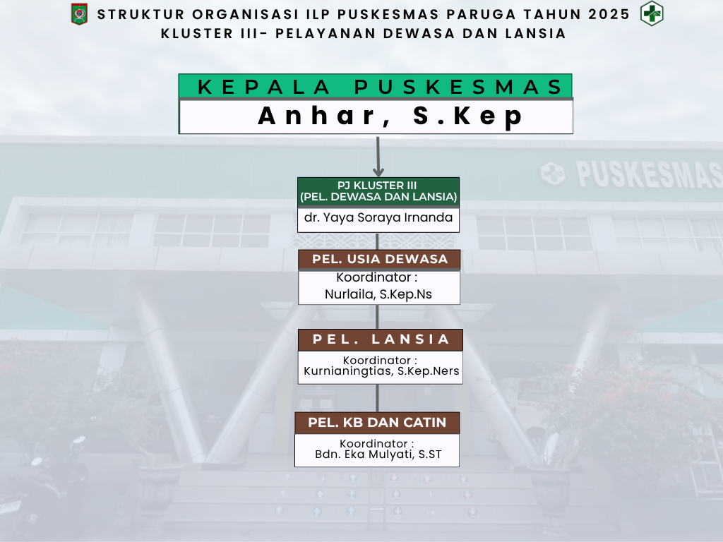 Kluster III merupakan pilar penting dalam pencegahan dan penanganan penyakit kronis di Puskesmas Paruga. Dengan membagi fokus pelayanan menjadi usia Dewasa, Lansia, dan program KB/Catin, Puskesmas dapat memberikan pelayanan kesehatan yang terfokus, relevan, dan berkelanjutan sesuai kebutuhan spesifik masing-masing kelompok usia tersebut.